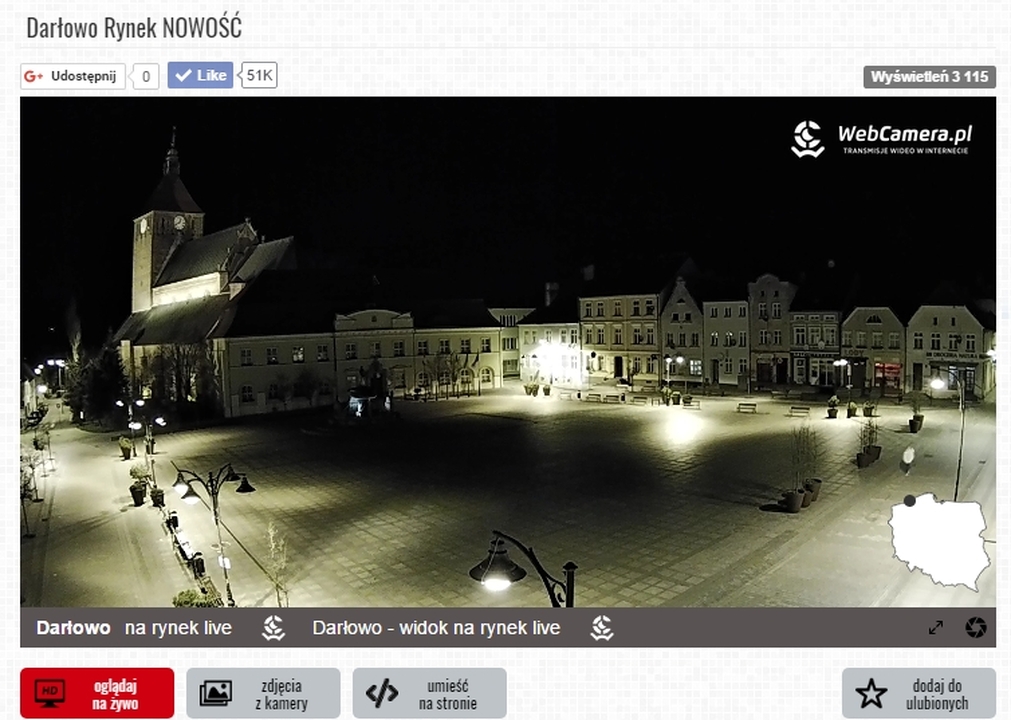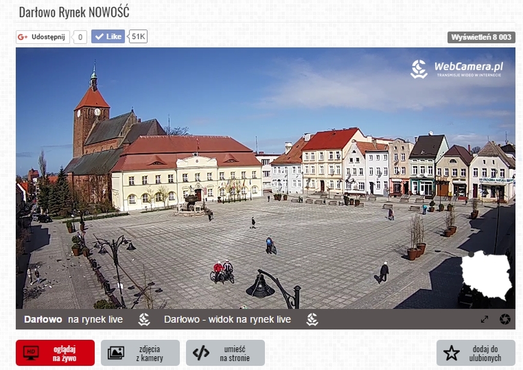 Dzięki dobrej współpracy darłowskiego samorządu, zarządu wspólnoty i prywatnego operatora na rynku w Darłowie zamontowano nowoczesną kamerę HD. Kamera z Placu Kościuszki już transmituje obraz do sieci 24h na dobę.