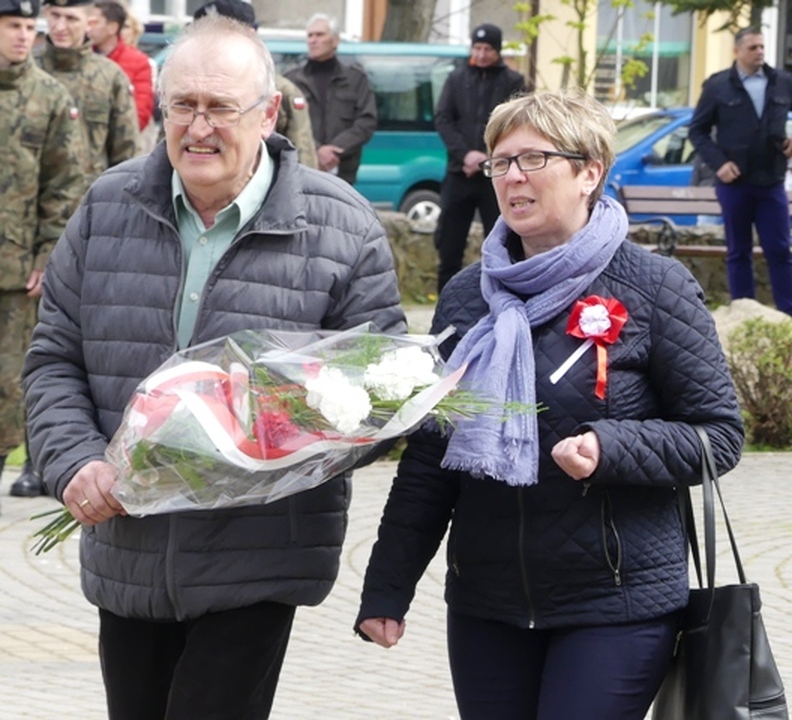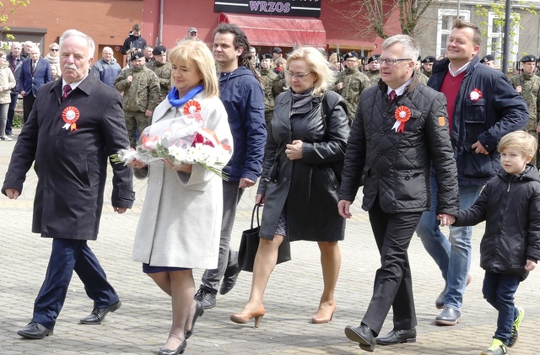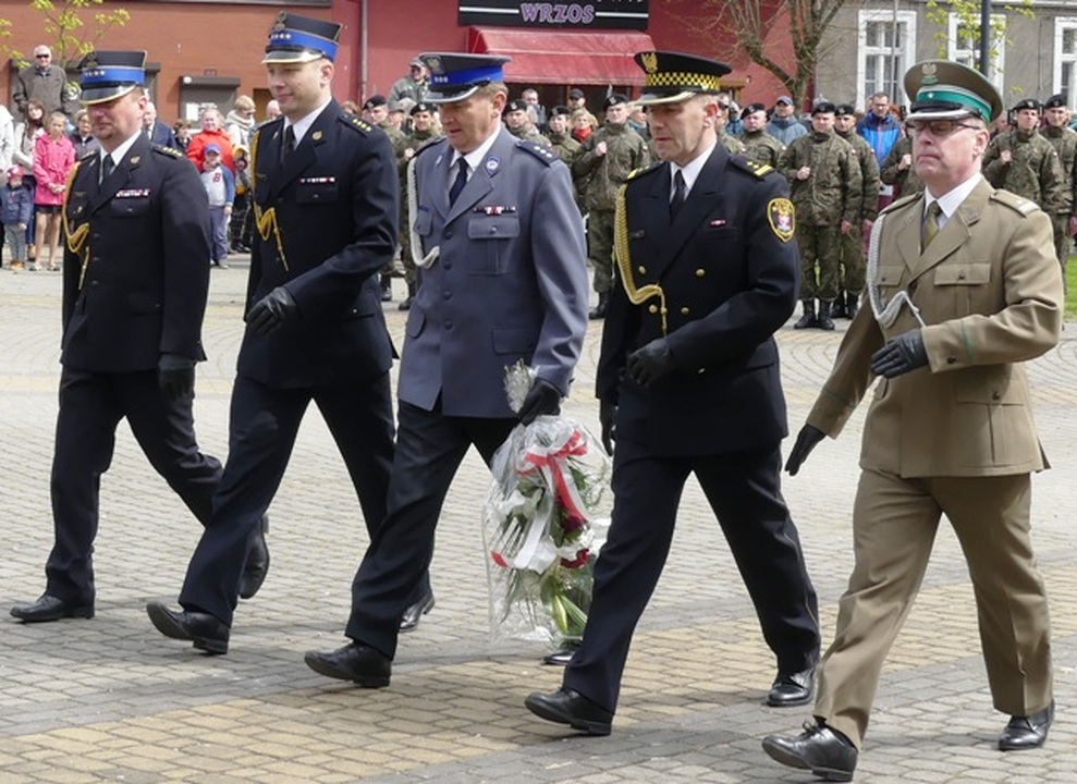 Mszę celebrował proboszcz Parafii M.B Częstochowskiej  o  Wiesław Przybysz. Udział w niej wzięli: Poczty Sztandarowe, Kompanie Honorowe Marynarki Wojennej i Szkoły Morskiej w Darłowie, władze miasta i gminy Darłowo, delegacja starostwa sławieńskiego, radni, harcerze, służby mundurowe i mieszkańcy Darłowa.                                                                                             Po mszy nastąpił przemarsz ulicami Darłowa  na Plac Marszałka Józefa Piłsudskiego. Tam przy zapalonym zniczu i zaciągniętych wartach honorowych przez Straż Graniczną przy Pomniku Tysiąclecia Państwa Polskiego przebiegała dalsza część  Manifestacji Patriotycznej z okazji 226. rocznicy uchwalenia Konstytucji 3 Maja, którą poprowadził Arkadiusz Sip dyrektor DOK-u witając wszystkich przybyłych. Po Hymnie  Państwowym treść preambuł: Konstytucji 3 Maja i  Konstytucji Rzeczpospolitej Polskiej z 1997 roku  odczytali nam przedstawiciele darłowskiej młodzieży. Jak słyszeliśmy we wstępie dokumentu, Konstytucja 3 Maja powstała „dla dobra powszechnego, dla ugruntowania wolności, dla ocalenia ojczyzny naszej i jej granic”.                                             Do zgromadzonych przemówił burmistrz Darłowa Arkadiusz Klimowicz. Przypomniał nam, że dokładnie 226 lat temu – 3 maja 1791 roku – Sejm Czteroletni jednogłośnie uchwalił ustawę rządową, zwaną Konstytucją 3 Maja. Ustawa zasadnicza była zapisana w 11 artykułach. Wprowadzała trójpodział władzy na ustawodawczą, wykonawczą i sądowniczą. Gwarantowała prawo powszechnej wolności dla szlachty i mieszczaństwa. Regulowała ona zasady funkcjonowania władz państwowych oraz prawa i obowiązki obywateli Rzeczpospolitej Obojga Narodów.                                                                  Obecnie obowiązująca Konstytucja Rzeczypospolitej Polskiej, jako ustawa zasadnicza  jest najważniejszym aktem prawnym RP uchwalonym  2 kwietnia 1997 roku przez Zgromadzenie Narodowe zatwierdzonym w ogólnonarodowym referendum 25 maja 1997 (20 lat temu).W preambule m.in. czytamy  „W trosce o byt i przyszłość naszej Ojczyzny, odzyskawszy w 1989 roku możliwość suwerennego i demokratycznego stanowienia o Jej losie, my, Naród Polski - wszyscy obywatele Rzeczypospolitej, zarówno wierzący w Boga będącego źródłem prawdy, sprawiedliwości, dobra i piękna, jak i nie podzielający tej wiary, a te uniwersalne wartości wywodzący z innych źródeł, równi w prawach i w powinnościach wobec dobra wspólnego - Polski, wdzięczni naszym przodkom za ich pracę, za walkę o niepodległość okupioną ogromnymi ofiarami, za kulturę zakorzenioną w chrześcijańskim dziedzictwie Narodu i ogólnoludzkich wartościach, nawiązując do najlepszych tradycji Pierwszej i Drugiej Rzeczypospolitej, zobowiązani, by przekazać przyszłym pokoleniom wszystko, co cenne z ponad tysiącletniego dorobku, złączeni więzami wspólnoty z naszymi rodakami rozsianymi po świecie, świadomi potrzeby współpracy ze wszystkimi krajami dla dobra Rodziny Ludzkiej, pomni gorzkich doświadczeń z czasów, gdy podstawowe wolności i prawa człowieka były w naszej Ojczyźnie łamane, pragnąc na zawsze zagwarantować prawa obywatelskie, a działaniu instytucji publicznych zapewnić rzetelność i sprawność, w poczuciu odpowiedzialności przed Bogiem lub przed własnym sumieniem, ustanawiamy Konstytucję Rzeczypospolitej Polskiej”.             Mówca przypomniał, że zarówno Prezydent, jak i obóz rządzący naruszyli Konstytucję, a  teraz dążą do jej całkowitej zmiany.                                             Po salwie honorowej delegacje samorządów: miasta, gminy i powiatu złożyły biało-czerwone wiązanki kwiatów na cokole pomnika z napisem „Nie zrucam ziemi skąd nasz ród”. Kwiaty złożyły także: służby mundurowe, przedstawiciele partii politycznych, placówek oświatowych, firm, spółdzielni, organizacji pozarządowych itd.