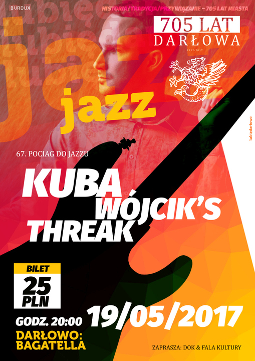 19 maja, o godz. 20:00, w ramach 705 Urodzin Darłowa w Jazz Pubie Bagatella odbędzie się 67. Pociąg do Jazzu. Zagra KUBA WÓJCIK’S THREAK, międzynarodowy projekt gitarzysty i kompozytora Kuby Wójcika z udziałem wybitnych muzyków mieszkających i tworzących w Kopenhadze. Bilety do nabycia na miejscu w cenie 25 zł.