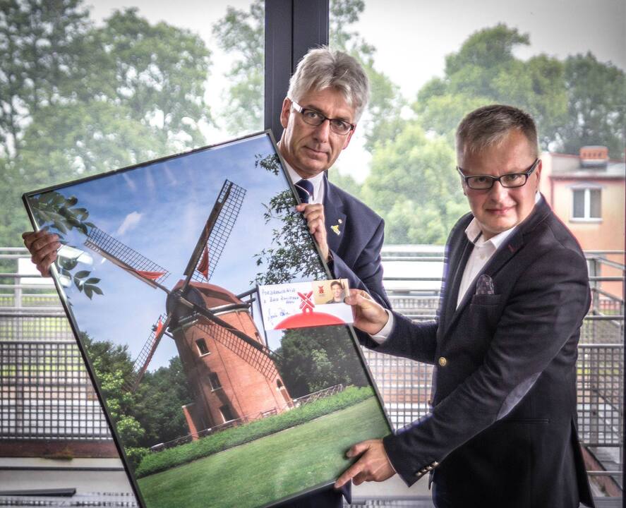 W podziękowaniu za zaproszenie włodarz otrzymał wielkoformatowe zdjęcie jednego z wiatraków, który mieści się nieopodal fabryki Rugenwalder Muhle, z którego to właścicielem Burmistrz Kurz jest zaprzyjaźniony, a także rycinę przedstawiającą 80 metrowy elewator zbożowy mieszczący się w Brake.