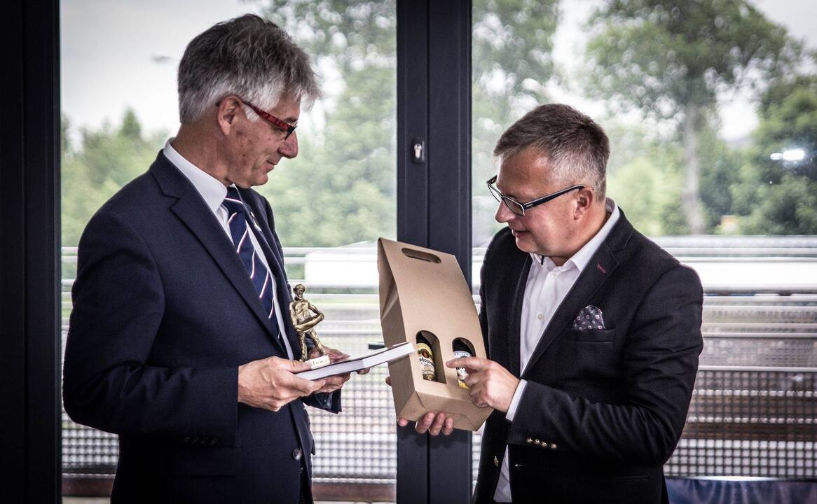 Burmistrz Darłowa wręczył Michaelowi Kurzowi, odlew darłowskiego rybaka, kronikę Kościoła Mariackiego w Darłowie i zestaw gadżetów promocyjnych Miasta Darłowa.