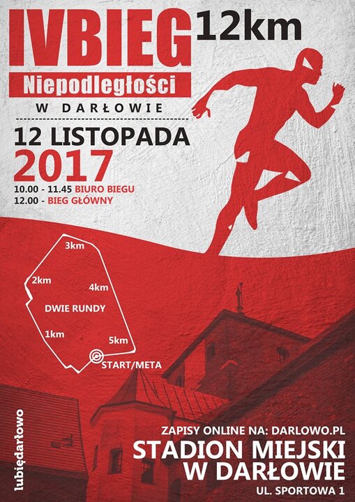 Już w najbliższą niedzielę, 12 listopada zapraszamy pasjonatów sportu do wzięcia udziału w IV Biegu Niepodległości w Darłowie. Tym razem zawodnicy będa musieli pokonać trasę ulicami Darłowa, składającą się z dwóch rund o łącznym dystansie 12 km. Start oraz meta znajduje się na terenie stadionu miejskiego przy ul. Sportowej 1 w Darłowie. Sygnał do startu godz. 12.00. Organizatorzy przygotowali dla pierwszych 200 osób, które ukończą bieg okolicznościowe medale zaprojektowane przez Daniela Frącza.