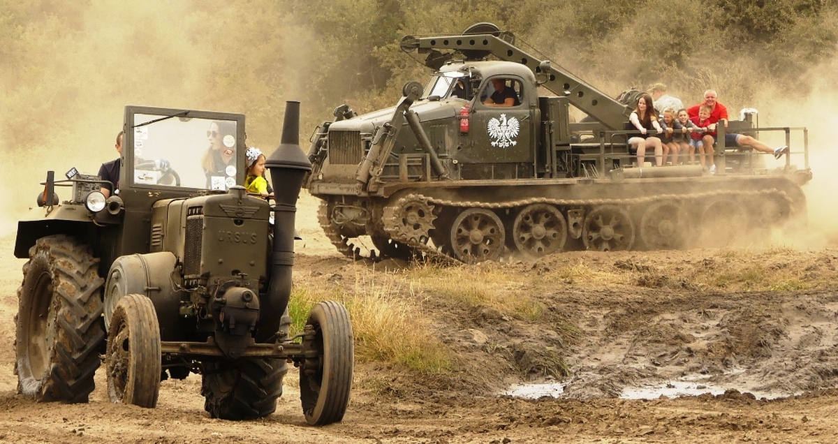 Po trudnym poligonie i po stromym  wzniesieniu w tumanach kurzu, spalin często po błocie jeżdżą: czołgi, amfibie, transportery opancerzone,  hamery, jeepy, ciężarówki   przewożąc amatorów żądnych silnych wrażeń. W części wystawowej prezentowane są wymuskane wozy opancerzone różnych armii, motocykle, specjalistyczne pojazdy wojskowe, polowa kuchnia amerykańska Wietnamu, dioramy  oraz   sprzęt wojskowy grup rekonstrukcyjnych.