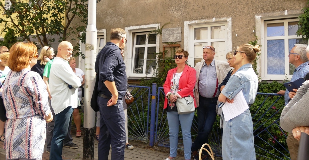 Potem udano się na ulicę Ogrodową nr 6. Tam młody Cezary Łazarewicz w mieszkaniu państwa Niny i Zbysława Góreckich poznawał tajniki opozycji wobec PZPR, MO i sowieckiej okupacji oraz redagował i kolportował prasę podziemną. Wspomagali go w tym literat Zbysław Górecki i jego małżonka Nina. Zbysław wydanych w roku 1981 jego wspomnieniach Jedzie klekocząc pod górę opisywał swoje początki pobytu w Darłowie drugiej połowie lat pięćdziesiątych XX wieku. Rodem z rdzennych ziem polskich spod Nieświeża musiał uciekać z rodziną przed sowiecką wywózką polskich inteligentów na Sybir. Zakotwiczył się w Darłowie. Tu powstały jego wszystkie książki. Tu dzielił się swą wiedzą i praktyce stosował zasadę Pro publico bono. Pod tablicą upamiętniającą twórczość i działalność opozycyjną pisarza ufundowana przez Towarzystwo Przyjaciół Ziemi Darłowskiej odczytano fragment jego wspomnień o Darłowie.