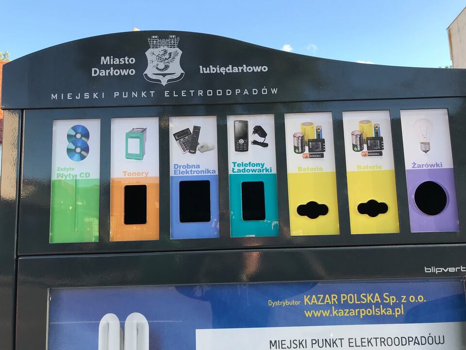 Niedawno naprzeciwko siedziby Miejskiego Przedsiębiorstwa Gospodarki Komunalnej w Darłowie przy ulicy 1-go Maja zamontowano miejski punkt elektroodpadów.  Można  do niego wyrzucić bez szkody dla środowiska. takie niepotrzebne  elektroodpady jak np.: płyty CD, tonery, kalkulatory, akcesoria telefoniczne, ładowarki, baterie, drobny sprzęt elektroniczny, żarówki.