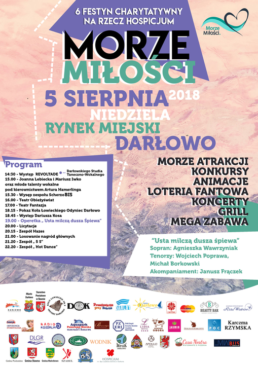 Morze Miłości to morze atrakcji, liczne konkursy z nagrodami, animacje, koncerty, wspólne grillowanie, dobra rodzinna zabawa. Festyn z dobrym celem i ideą, do tego miejsce fajnych spotkań i mega zabawa do późna. Darłowo - Rynek, już 5 sierpnia. Polecamy i zapraszamy.
