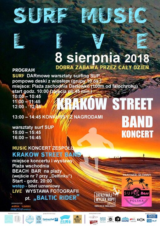 Już jutro na plaży zachodniej w Darłówku, punktualnie o godzinie 10:00 rozpocznie się Surf Music Live. Moc atrakcji i cały dzień dobrej zabawy nad wodą i na wodzie. Tematem przewodnim wydarzenia będą darmowe warsztaty surfing SUP. Ponadto mnóstwo atrakcji dla dzieci w tym warsztaty żeglarstwa, liczne zabawy i konkursy. Widowiskowo zapowiadają się warsztaty z trickboardingu czyli balansowania na desce z walcem.