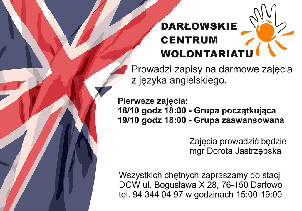 Darłowskie Centrum Wolontariatu prowadzi zapisy na darmowe zajęcia z języka angielskiego.