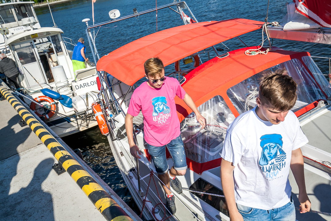 „Zorganizowaliśmy konkurs na logo naszego projektu oraz tekstu szanty. Każda zgłoszona praca wykonana była na najwyższym poziomie. Ciężko było, ale ostatecznie wybraliśmy według nas najlepszy projekt, który świetnie prezentuje się na naszych "kilwaterowych" koszulkach oraz tekst szanty. Bezkonkurencyjny okazał się Daniel Frącz, który zdobył główną nagrodę w postaci rejsu na Gotlandię. Gala wręczenia nagród zorganizowana na wysokim poziomie, statuetki wykonane przez naszą ekipę na szkolnych warsztatach, wspaniały występ zespołu, mnóstwo zabawy, uśmiechu i przede wszystkim satysfakcji.”