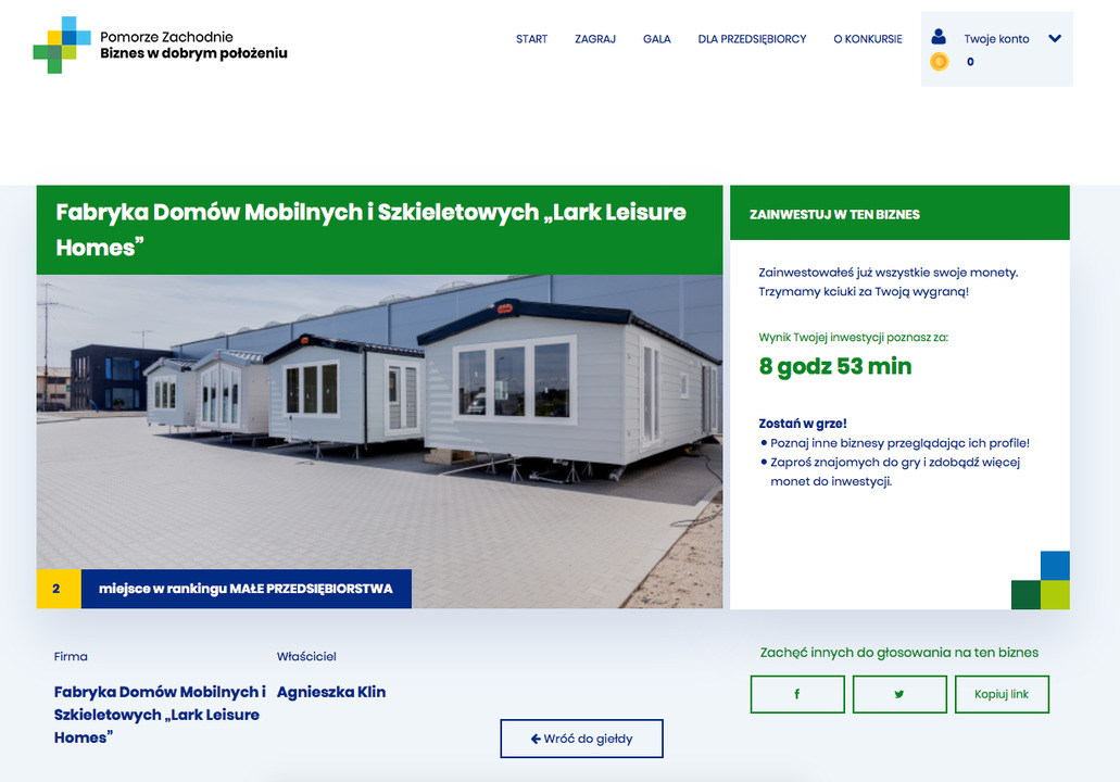 Miło nam poinformować, że Fabryka Domów Mobilnych i Szkieletowych z siedzibą w Darłowie zakwalifikowała się w konkursie pn.: „Twój biznes pod banderą sukcesu" ogłoszonym przez Marszałka Województwa Zachodniopomorskiego Olgierda Geblewicza.