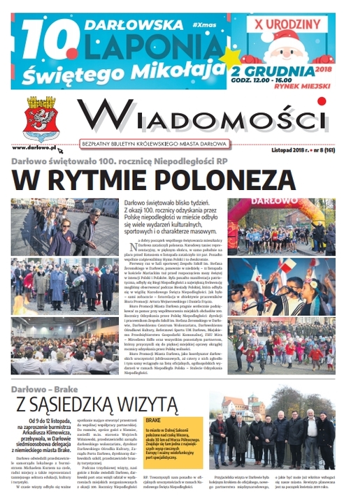 Od dzisiaj w ratuszu, w stałych punktach, a także na naszej stronie internetowej - w wersji elektronicznej (w zakładce 'Wiadomości Darłowskie') można nabyć bezpłatne, ósme w tym roku wydanie Wiadomości Darłowskich.