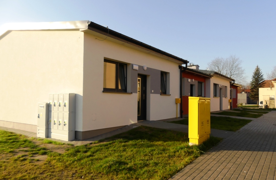 Miasto zbudowało dwa  wolnostojące, jednokondygnacyjne  budynki, położone w tym samym ciągu, co cztery poprzednie budynki z wyjściem na ulicę Fryderyka Chopina. Wzniesiono je w technologii tradycyjnej. W każdym z budynków znajdują się cztery  rodzinne mieszkania. Mniejsze mają po 44,53, a większe 49,31  metrów kwadratowych powierzchni użytkowej. Dachy są płaskie o kącie nachylenia  10 stopni. W budynku „A” znajdują się  4 lokale mieszkalne dwupokojowe, w budynku „B” 3 lokale mieszkalne dwupokojowe i 1 lokal jednopokojowy. W każdym mieszkaniu znajdują się również korytarz,  łazienka z umywalką, toaletą i kabiną natryskową  oraz  wydzielona kuchnia  z kuchenką i piekarnikiem. Dodatkowo w budynku B wydzielono miejsce gromadzenia odpadów stałych. Podłużne bryły budynków zorientowano ścianami szczytowymi w kierunku wschód – zachód, z wejściami do każdego lokalu usytuowanymi od strony północnej poprzez przedsionek. Budynki są wyposażone w instalacje: wodną, kanalizacyjną, elektryczną, gazową, grzewczą i posiadają certyfikaty energetyczne. Na jednym z budynków zamontowano zbiorczą antenę satelitarną, a w każdym z nich jest wewnętrzna sieć internetowa Mieszkania są przestronne, jasne, czyste. Na podłogach pokojowych znajdują się panele, w łazience, w kuchni i korytarzu terrakota. Wszystkie budynki zostały z zewnątrz ocieplone, tak by koszty eksploatacji tych mieszkań w okresie zimowym były jak najniższe. Tutaj jest świetnie. W niewielkiej odległości od budynków znajduje się przedszkole, przychodnia zdrowia, sklepy, średnia szkoła, a do rynku jest zaledwie 500 metrów, mówi jedna z nowych lokatorek budynku socjalnego. Z ośmiu mieszkań trzy przekształcono w lokale komunalne w których zasiedlono rodziny z dziećmi niepełnosprawnymi. Nowe mieszkania  socjalne przydzielono trzem rodzinom czteroosobowym, jedno pięcioosobowej, jedno mniejsze trzyosobowej. Lokatorzy z mieszkań socjalnych zapłacą czynsz po 0,89 zł za metr kwadratowy, resztę w postaci dotacji dla MZBK dopłaci samorząd mówi dyrektor Miejskiego Zarządu Budynków Komunalnych – Maciej Bukowski. Wszystkie prace inwestycyjne pochłonęły łącznie 1.835.528,88 złotych, z czego 580.747 zł pochodziło z dotacji Banku Gospodarstwa Krajowego. Budynki zaprojektowali  „KLJ Architekci" Łukasz Janiak, a zrealizowała inwestycję ARKOM Spółka z o.o.