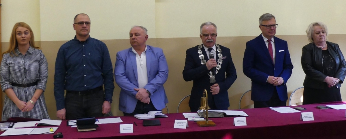 Ze względu na remont miejskiego ratusza czwarta w tej kadencji nadzwyczajna sesja Rady Miejskiej obradowała 1 lutego 2019 w sali gimnastycznej Miejskiego Gimnazjum im. S. Dulewicza.