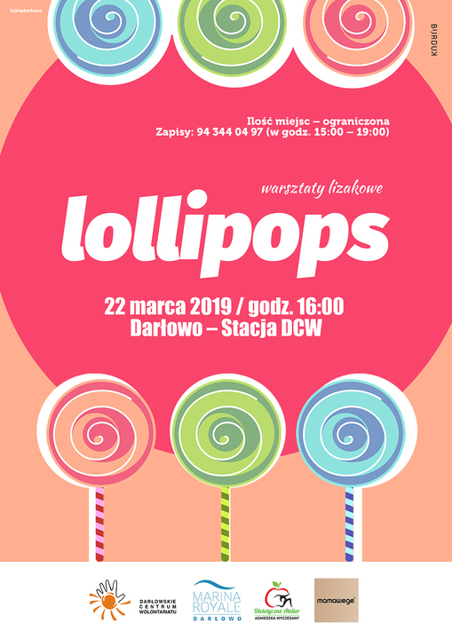 Darłowskie Centrum Wolontariatu wraz z Poradnią Dietetyczną Agnieszka Wyczesany - Dietetyczne Atelier oraz Mamawege zapraszają na kolejne warsztaty - tym razem warsztaty lizakowe czyli Lollipops.