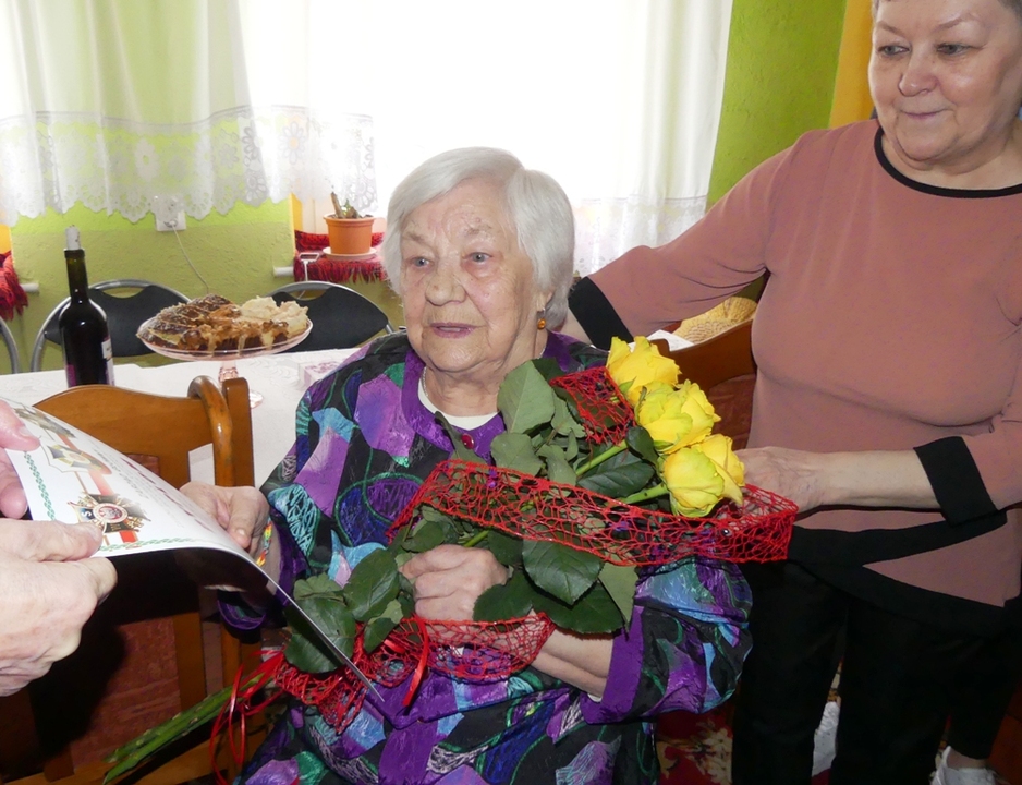 W tym przepięknym wiosennym dniu bardzo miło było spotkać się z osobą, która nadal emanuje ciepłem, optymizmem, pogodą ducha i wiarą w ludzi. Droga Jubilatko, w imieniu władz miasta życzymy Ci dużo, dużo zdrowia, miłości najbliższych, szacunku przyjaciół i otoczenia oraz spoglądania zawsze radośnie na świat. Życzymy pani Władysławie dalszych spokojnych lat oraz uśmiechu i pogody ducha na co dzień. Cała Rodzina jubilatki gorąco życzy kochanej Mamie, Babci i Prababci doczekania w zdrowiu 100 lat!