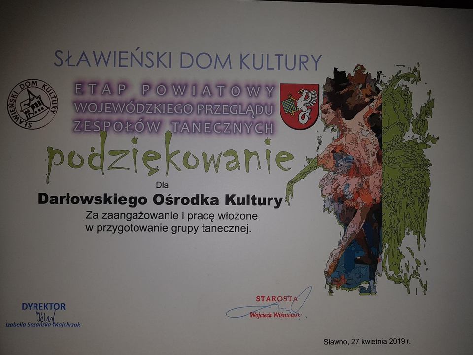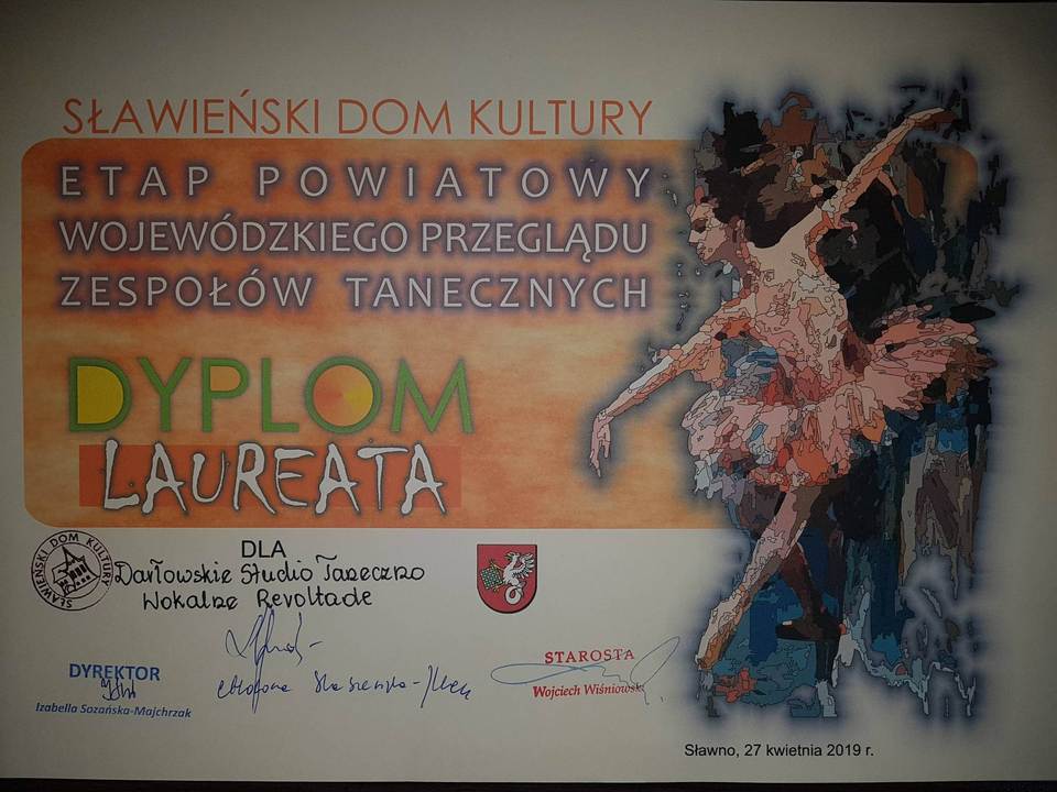 Jak nas informuje Moniika Bobrowska kolejny sukces odniosło Darłowskie Studio Taneczno- Wokalne „Revoltade” w Powiatowym Przeglądzie Amatorskiego Ruchu Artystycznego, który miał miejsce 27 kwietnia br. w Domu Kultury w Sławnie. W przeglądzie ARA-2019 w kategorii zespoły taneczne wyłoniono trzech laureatów do etapu wojewódzkiego. Etap ten odbędzie się kolejny raz w Szczecinie dnia 1czerwca 2019. Darłowskie Studio Taneczno- Wokalne "Revoltade" pod kierunkiem Dariusza Chimko z Darłowskiego Ośrodka Kultury im. Leopolda Tyrmanda dostąpiło zaszczytu otrzymania tytułu laureata i w ten sposób zostało nominowane do przeglądu wojewódzkiego. Naszym laureatom gratulujemy i życzymy dalszych sukcesów.