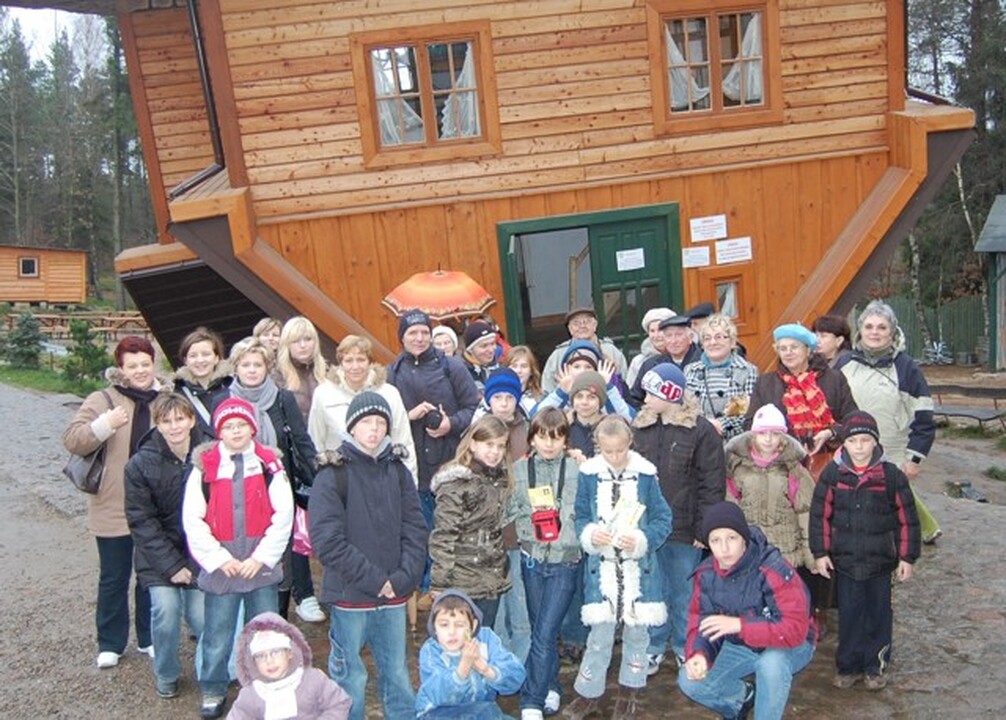 Po pobycie w schronie, w którym przeżyliśmy nalot i strzelaninę - kolejnym obiektem a raczej budowlą, przy zwiedzaniu której trudno było dosłownie zachować równowagę zmysłów - był „dom do góry nogami”. Ta budowla to alegoria współczesnego świata,