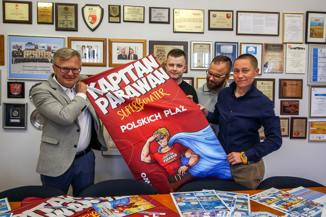 Obie części komiksu z przygodami Kapitana Parawana - superbohatera polskich plaż - dostępnesąpod adresem www.darlowo.pl(foldery do pobrania).