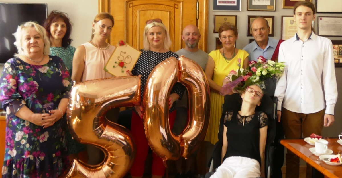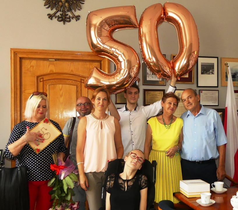 Na uroczystość Złotych Godów do ratusza przybyła najbliższa rodzina. Gratulacjom i życzeniom nie było końca. Złote Gody, to jubileusz szczególny. Wspólnie przeżyte 50 lat to dowód na istnienie wierności, miłości, wzajemnego zrozumienia oraz istoty związku małżeńskiego. To wzór i piękny przykład dla młodych pokoleń wstępujących w związki małżeńskie. Rocznica ślubu to wzruszająca uroczystość. Ożyły wspomnienia, wróciły chwile i obrazy mieniące się swoistym blaskiem.  Był szampan i tort. Złotym Jubilatom życzymy dalszych szczęśliwych lat, pełnych zdrowia.