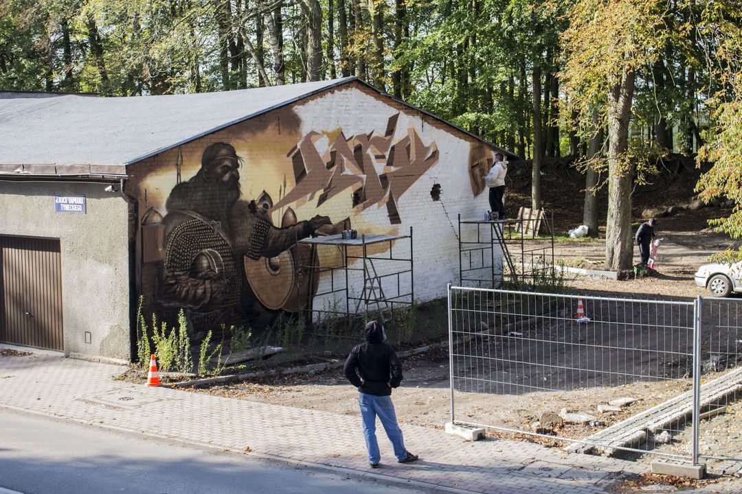 Talent, pomysł oraz farba w sprayu. To wszystko w połączeniu musi dać świetny efekt. I tak było w tym przypadku. W głowie jednego z utalentowanych mieszkańców Darłowa zrodził się pomysł, aby swoją twórczość wyrazić w większym formacie z nawiązaniem do lokalnej historii. "Jery" (pseudonim artysty) szybko wziął sprawy w swoje zdolne dłonie. Do współtworzenia muralu zaprosił lęborskiego przedstawiciela sceny graffiti - Patryka "Paka" Łukaszuka (Paka Art Studio). Panowie "rozbili prywatne skarbonki" i zakupili puchy. Dalej poszło z górki.