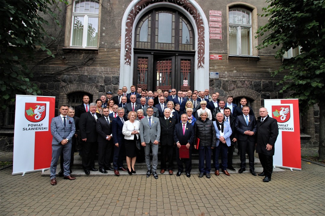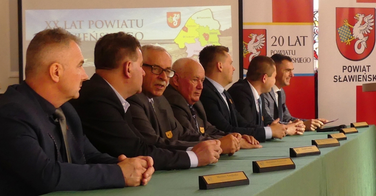 W sali herbowej Urzędu Miejskiego w Sławnie, zbudowanej na początku XX wieku specjalnie na obrady starostwa powiatowego 4 października 2019 r., odbyła się uroczysta sesja Rady Powiatu Sławieńskiego z okazji 20- lecia powiatowego samorządu. Na wstępie przewodniczący Rady Powiatu Sławieńskiego Tomasz Bobin powitał przybyłych i w postaci projekcji multimedialnej zaprezentował w skrócie dwudziestoletnią historię Powiatu Sławieńskiego.