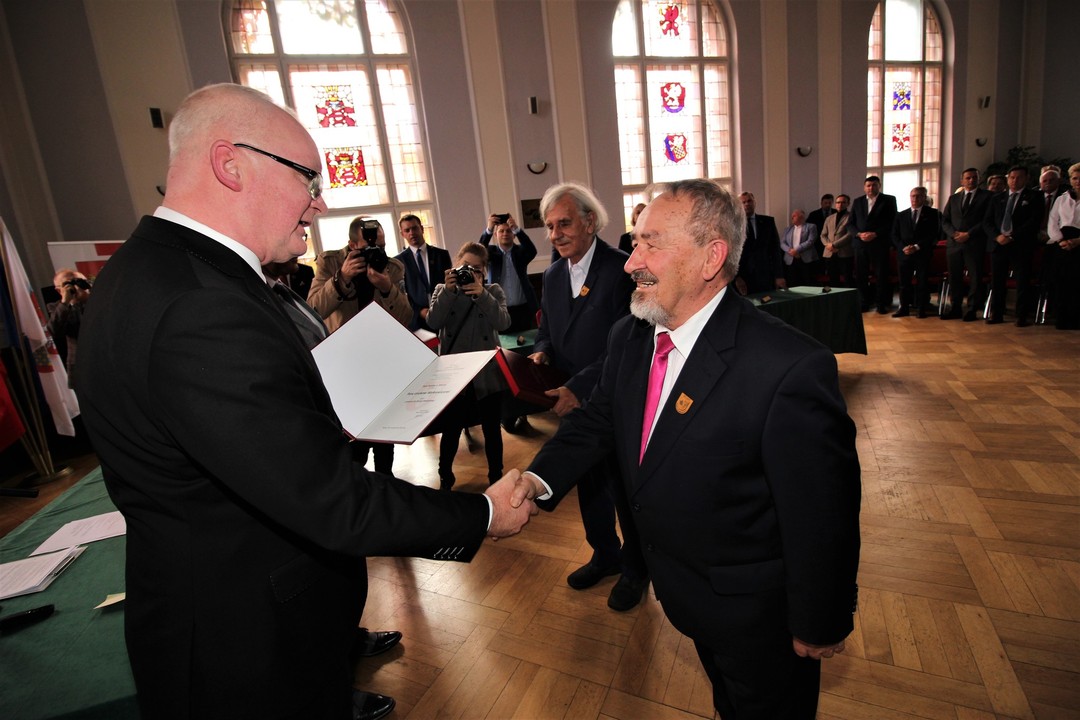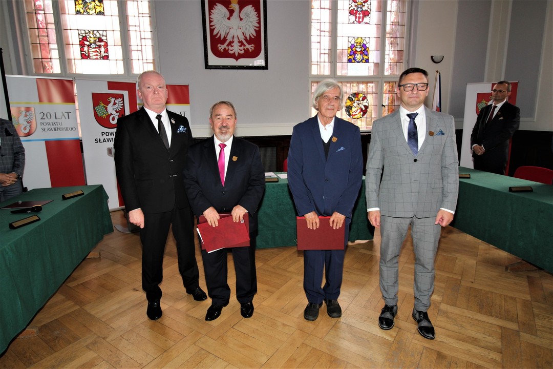 Podczas uroczystej sesji, wręczono wyróżnienia „Zasłużony dla Powiatu Sławieńskiego”, a otrzymali je Jan Sroka ze Sławna i Leszek Walkiewicz z Darłowa. Obaj nagrodzeni dużą część swojego życia poświęcili pracy na rzecz promocji Powiatu Sławieńskiego poprzez wydawnictwa książkowe publicystykę, organizowanie sesji historycznych i wystaw.
