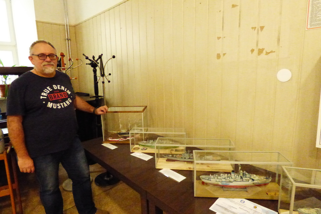 Na zdjęciach: jak żywe modele statków i okrętów ze swoim konstruktorem do obejrzenia w holu Ratusza