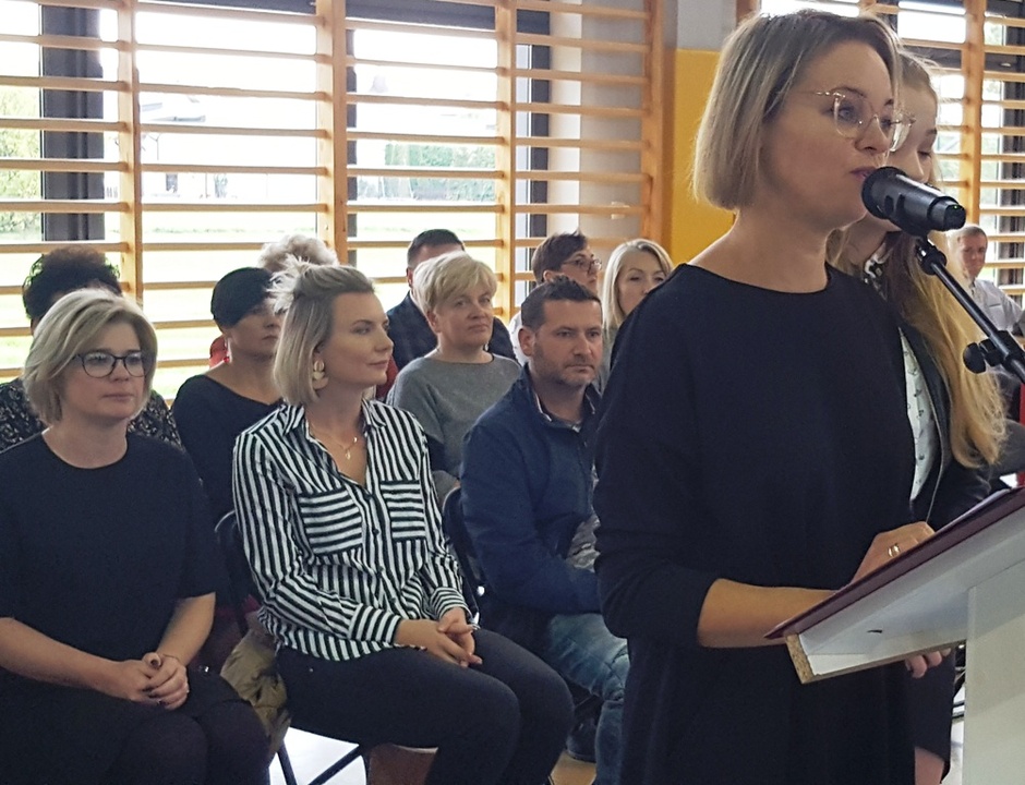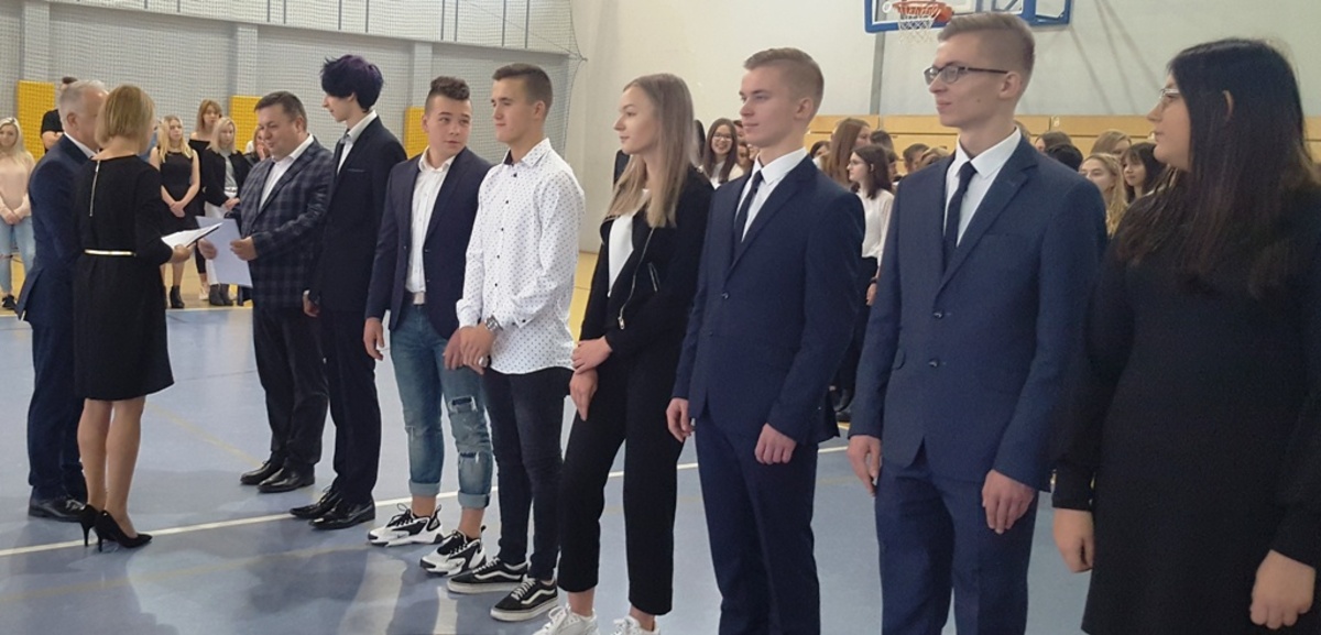 Po odegraniu Hymnu Państwowego i odśpiewaniu Hymnu Szkoły głos zabrała dyrektor ZS Joanna Witkowska. Bardzo ciepło przywitała przybyłych gości w osobach: przewodniczącego Rady Miejskiej Czesława Woźniaka, przewodniczącej komisji edukacji kultury i turystyki Krystynę Różańską, przedstawicieli Rady Rodziców, grono nauczycielskie. Następnie w sposób szczególny, powitała 110 uczniów czterech klas pierwszych (dwóch klas LO i dwóch szkoły branżowej). Ślubowano na Sztandar Szkoły. W dalszej części uroczystości wytypowane trójki klas pierwszych wzięły udział w zgaduj zgaduli na temat znajomości szkoły. Zwyciężyła klasa IA z LO.