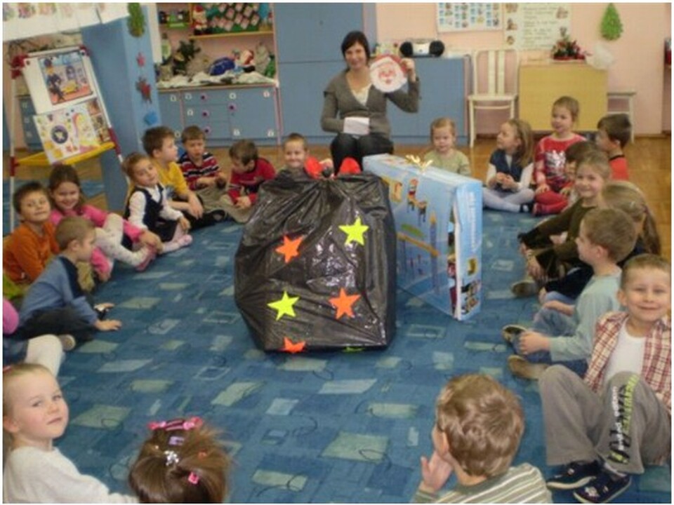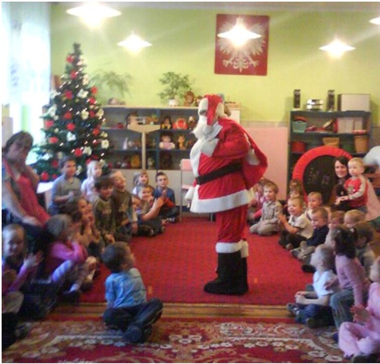 Jeszcze w XV wieku w Darłowie mniej więcej na miejscu Przedszkola nr 1 stał kościół p.w. Św. Mikołaja - patrona rybaków. Niestety zniszczony został w czasie wojny trzydziestoletniej w XVII wieku. Już na kilka dni przed Św. Mikołajem Darłowo przybrało odświętny wygląd. Przed ratuszem ustawiono piękną choinkę ustrojoną bombkami łańcuchami i świetlnymi lampkami. Również ratusz i otaczające go drzewa przybrały świąteczny wygląd migocząc światłami niczym gwiazdki. Główna ulica miasta o tej porze roku jest najpiękniejsza. Tegoroczna nietypowa aura nie zmyliła Św. Mikołaja. Pomimo braku białego puchu, jak zwykle 6 grudnia we wczesnych godzinach rannych przybył do Darłowa i skierował się właśnie do Przedszkola nr 1. Z radością powitały go dzieci, obserwując czy przybył z dużym workiem prezentów. Niektóre dzieci czekały na niego cały rok. Ten niezwykły i oczekiwany w naszym mieście gość zapukał w okno sali, w której dzieci podziwiały dużą, pięknie ustrojoną choinkę. Mikołajowi tak przypadły do gustu śpiewane przez wszystkie dzieci kolędy i pastorałki, że sam zaczął ochoczo tańcować, mało butów nie pogubił. Szkoda, że wkrótce musiał je pożegnać, bo rockendroll ze Świętym Mikołajem był najśmieszniejszy.