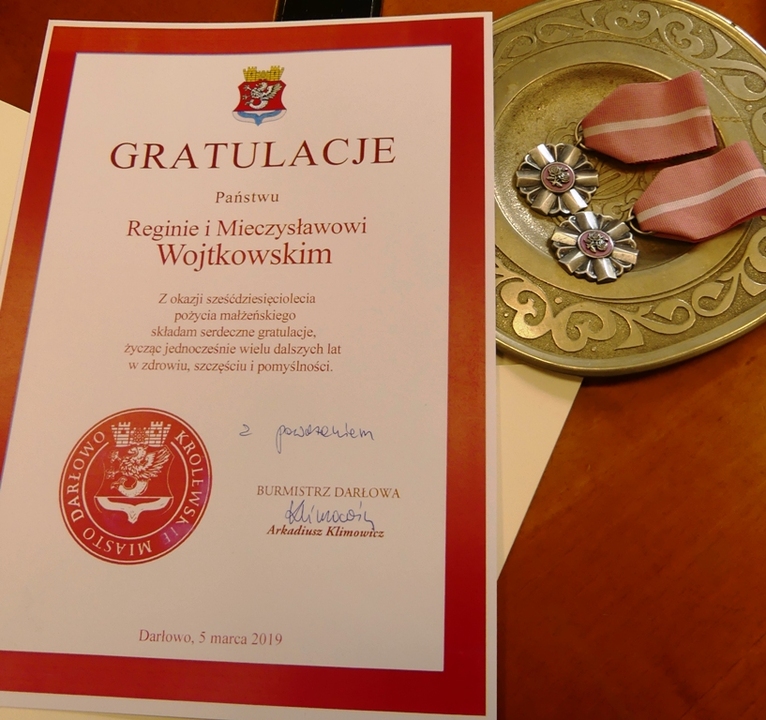 W czwartek 5 marca 2020 Arkadiusz Klimowicz – Burmistrza Darłowa uhonorował w ratuszu w imieniu Prezydenta RP, Reginę i Mieczysława Wojtkowskich Medalami za Długoletnie Pożycie Małżeńskie.