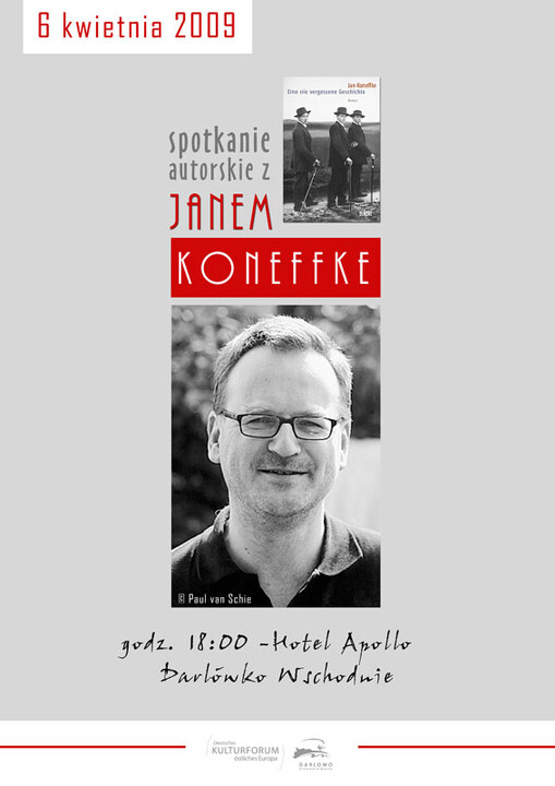 Przypomnijmy - spotkanie z niemieckim pisarzem Janem Koneffke odbędzie się w dniu 6 kwietnia 2009 (poniedziałek) o godzinie 18:00 w Hotelu Apollo w Darłówku Wschodnim (ul. Kąpielowa11).