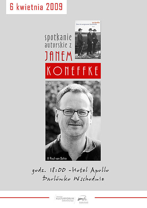 Przypominamy, że dziś o godzinie 18:00 w Hotelu Apollo w Darłówku odbędzie się spotkanie z niemieckim pisarzem Janem Koneffke.  Więcej na temat pisarza we wcześniejszych wiadomościach serwisu. Serdecznie zapraszamy